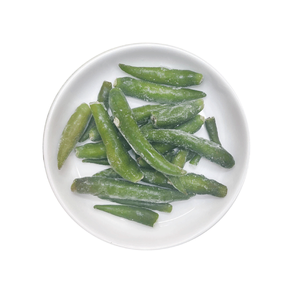 インド産のグリーンチリです。冷凍なのでストックしやすく、いつでも料理に使えます。